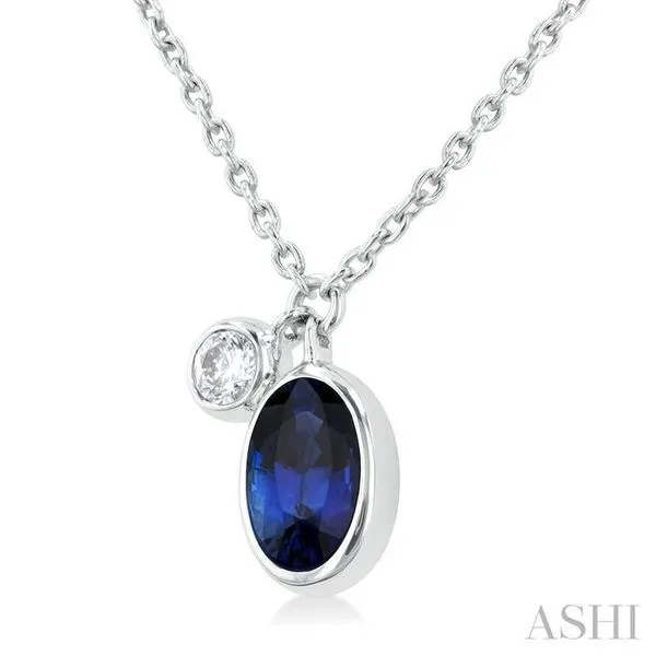 6x4 MM Oval Cut Sapphire and 1/20 Ctw Bezel Set Round Cut Diamond Precious Pendant With Chain in 14K White Gold Image 2 Adler's Diamonds Saint Louis, MO