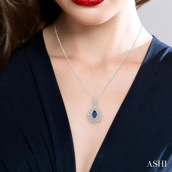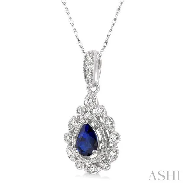 6x4 MM Pear Cut Sapphire and 1/8 Ctw Lattice Round Cut Diamond Precious Pendant With Chain in 10K White Gold Image 2 Adler's Diamonds Saint Louis, MO