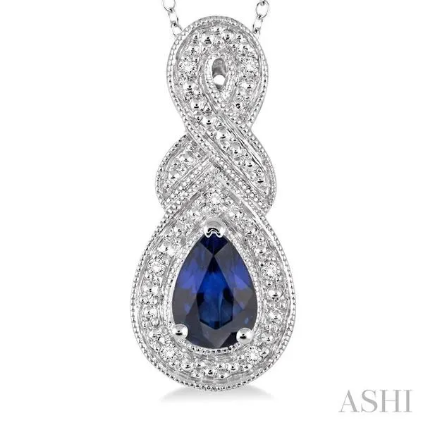 6x4 MM Pear Shape Sapphire and 1/50 Ctw Round Cut Diamond Pendant in Sterling Silver with Chain Image 2 Adler's Diamonds Saint Louis, MO