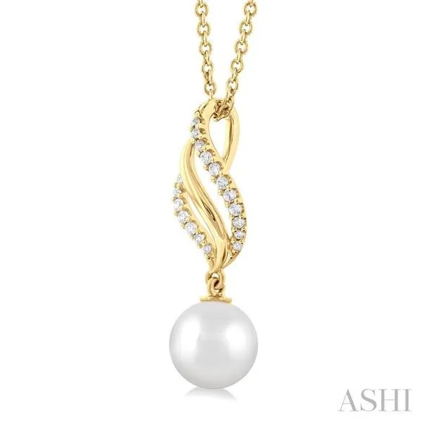 7 MM Conch Round Shape Cultured Pearl and 1/10 Ctw Conch Round Cut Diamond Fashion Pendant With Chain in 10K Yellow Gold Image 2 Adler's Diamonds Saint Louis, MO