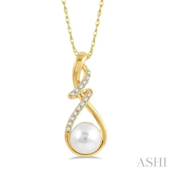 7 MM Round Shape Cultured Pearl and 1/10 Ctw Swirl Top Round Cut Diamond Fashion Pendant With Chain in 10K Yellow Gold Adler's Diamonds Saint Louis, MO