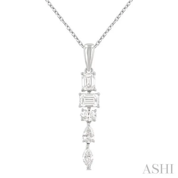 7/8 Ctw Mixed Diamond Cut Dangle Fashion Pendant With Chain in 14K White Gold Adler's Diamonds Saint Louis, MO