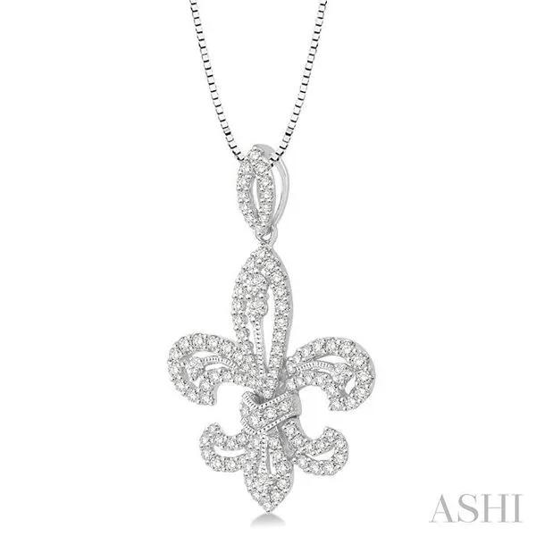 7/8 Ctw Round Cut Diamond Fleur De Lis Diamond Pendant in 14K White Gold with Chain Image 2 Adler's Diamonds Saint Louis, MO
