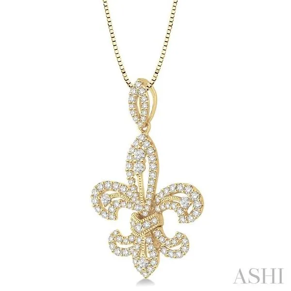 7/8 Ctw Round Cut Diamond Fleur De Lis Diamond Pendant in 14K Yellow Gold with Chain Image 2 Adler's Diamonds Saint Louis, MO