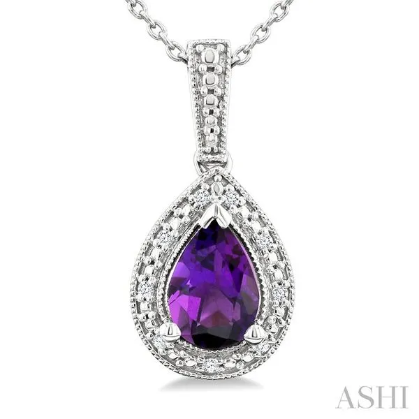 7X5 MM Pear Shape Amethyst and 1/50 Ctw Round Cut Diamond Semi-precious Pendant With Chain in Sterling Silver Image 2 Adler's Diamonds Saint Louis, MO