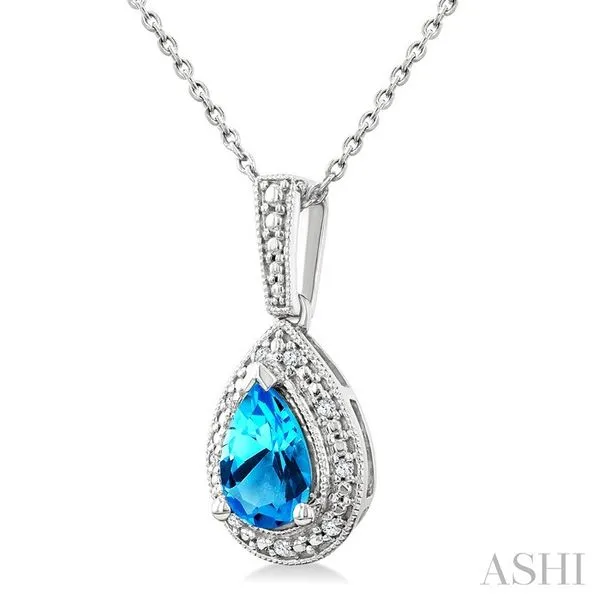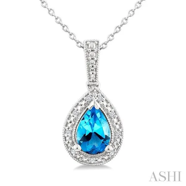 7X5 MM Pear Shape Blue Topaz and 1/50 Ctw Round Cut Diamond Semi-precious Pendant With Chain in Sterling Silver Image 3 Adler's Diamonds Saint Louis, MO