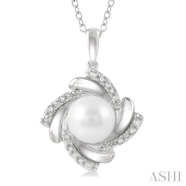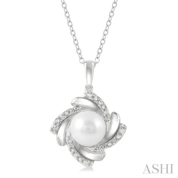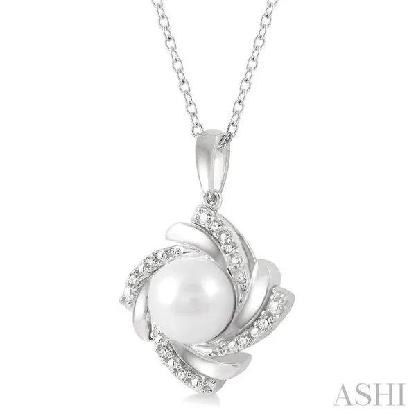 7x7 MM Round Shape Cultured Pearl and 1/50 Ctw Swirl Round Cut Diamond Pendant With Chain in Sterling Silver Image 4 Adler's Diamonds Saint Louis, MO