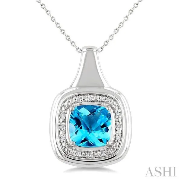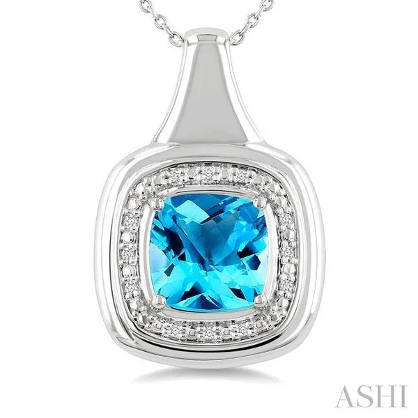 8 MM Cushion Shape Blue Topaz and 1/20 Ctw Round Cut Diamond Semi-Precious Pendant With Chain in Sterling Silver Adler's Diamonds Saint Louis, MO