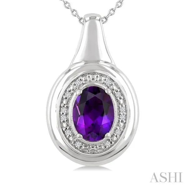 8X6 MM Oval Shape Amethyst and 1/20 Ctw Round Cut Diamond Semi-precious Pendant With Chain in Sterling Silver Image 2 Adler's Diamonds Saint Louis, MO