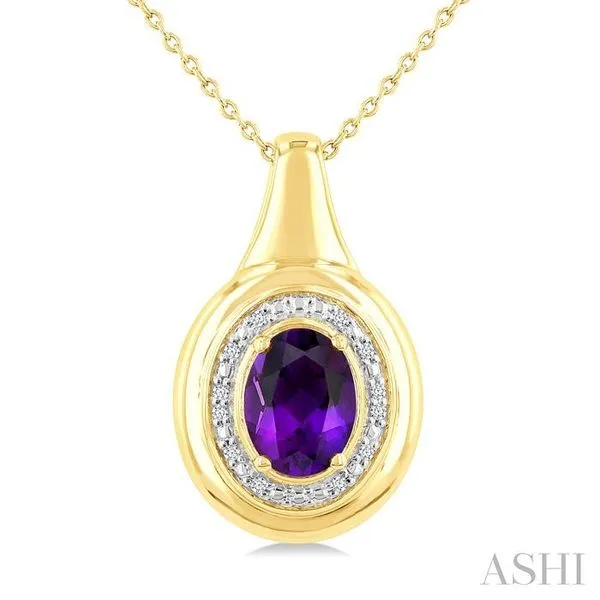 8X6 MM Oval Shape Amethyst and 1/20 Ctw Round Cut Diamond Semi-precious Pendant With Chain in Yellow Gold Vermeil Image 2 Adler's Diamonds Saint Louis, MO