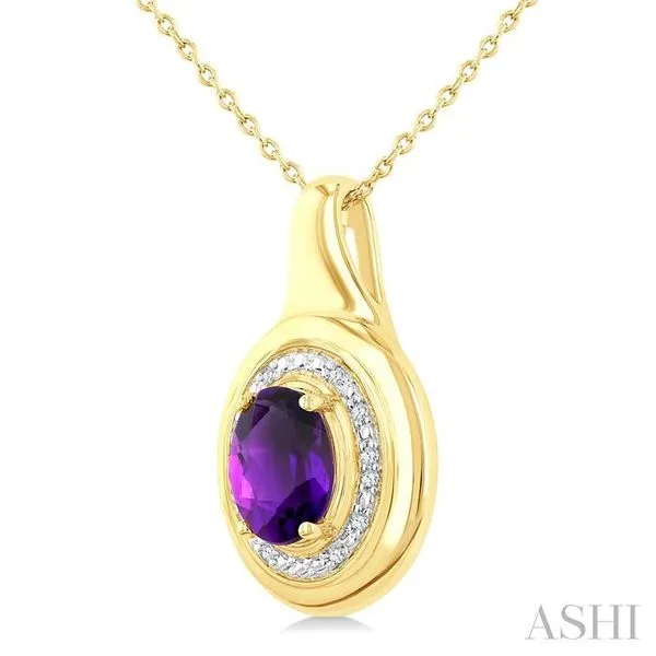 8X6 MM Oval Shape Amethyst and 1/20 Ctw Round Cut Diamond Semi-precious Pendant With Chain in Yellow Gold Vermeil Image 3 Adler's Diamonds Saint Louis, MO
