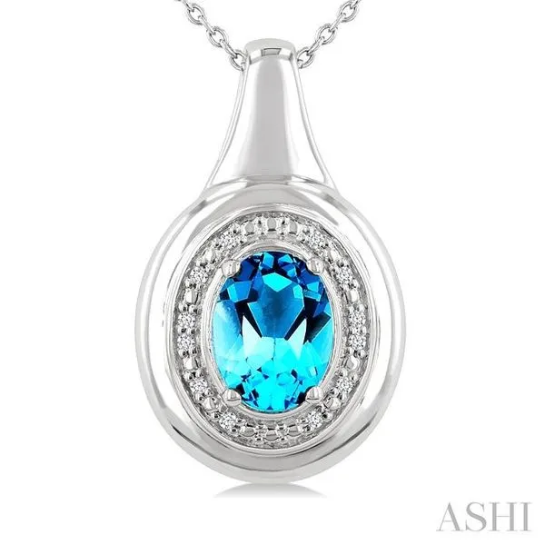 8X6 MM Oval Shape Blue Topaz and 1/20 Ctw Round Cut Diamond Semi-precious Pendant With Chain in Sterling Silver Image 2 Adler's Diamonds Saint Louis, MO