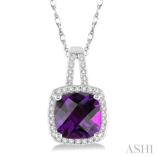 8x8 MM Cushion Shape Amethyst and 1/5 Ctw Round Cut Diamond Pendant in 10K White Gold with Chain Adler's Diamonds Saint Louis, MO