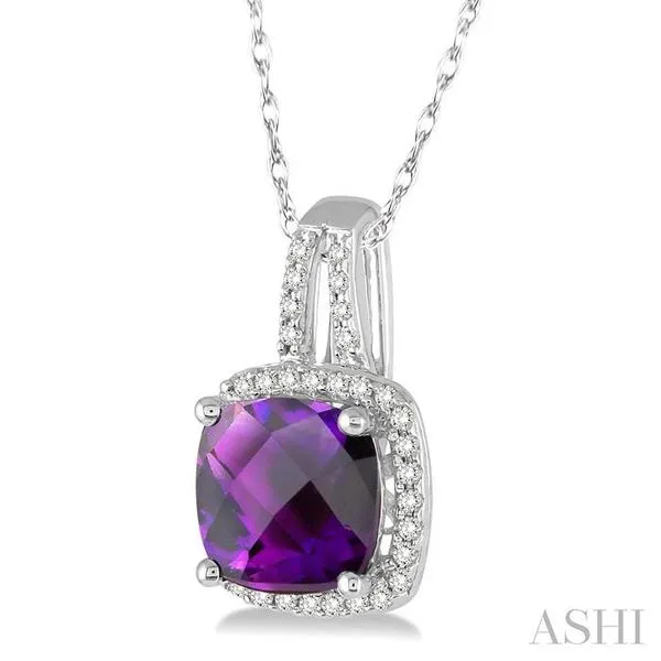 8x8 MM Cushion Shape Amethyst and 1/5 Ctw Round Cut Diamond Pendant in 10K White Gold with Chain Image 2 Adler's Diamonds Saint Louis, MO