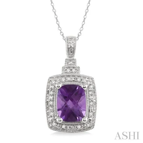 9x7 MM Cushion Shape Amethyst and 1/10 Ctw Single Cut Diamond Pendant in Sterling Silver with Chain Image 2 Adler's Diamonds Saint Louis, MO