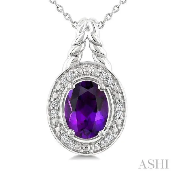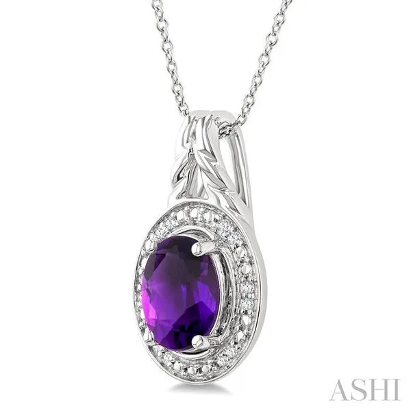 9X7 MM Oval Shape Amethyst and 1/20 Ctw Round Cut Diamond Semi-precious Pendant With Chain in Sterling Silver Image 2 Adler's Diamonds Saint Louis, MO