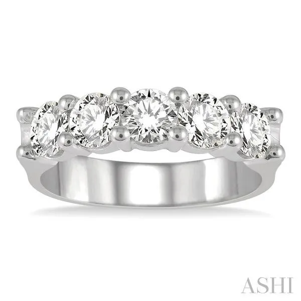 1 1/2 Ctw 5 Stone Round Cut Diamond Wedding Band in 14K White Gold Image 2 Adler's Diamonds Saint Louis, MO