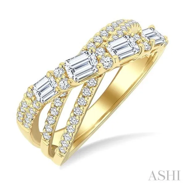 1 1/4 Ctw Emerald and Round Cut Diamond Split Crossover Fashion Ring in 14K Yellow Gold Image 2 Adler's Diamonds Saint Louis, MO
