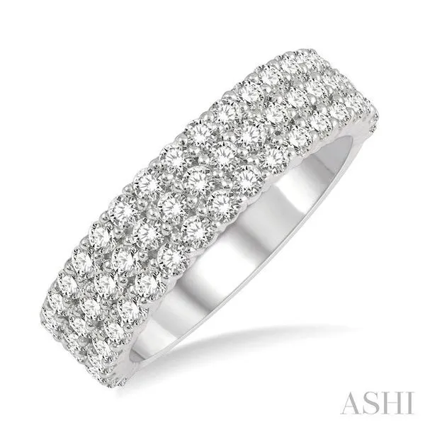 1 1/4 Ctw Triple Row Round Cut Diamond Wedding Band in 14K White Gold Image 3 Adler's Diamonds Saint Louis, MO