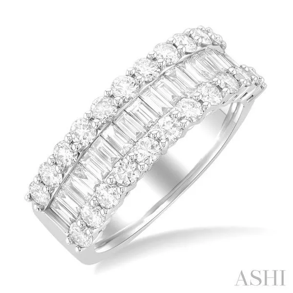 1 3/4 Ctw Channel Set Baguette and Round Cut Diamond Fashion Band in 14K White Gold Adler's Diamonds Saint Louis, MO