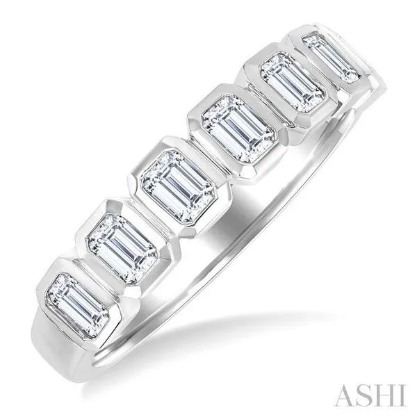 1 Ctw 7-Stone Bezel Set Emerald Cut Diamond Fashion Band in 14K White Gold Image 2 Adler's Diamonds Saint Louis, MO