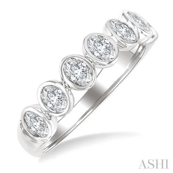 1 Ctw 7-Stone Bezel Set Oval Cut Diamond Fashion Band in 14K White Gold Adler's Diamonds Saint Louis, MO