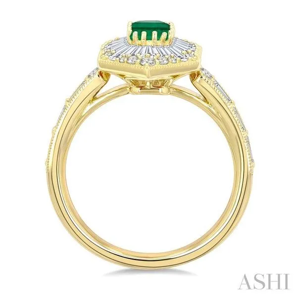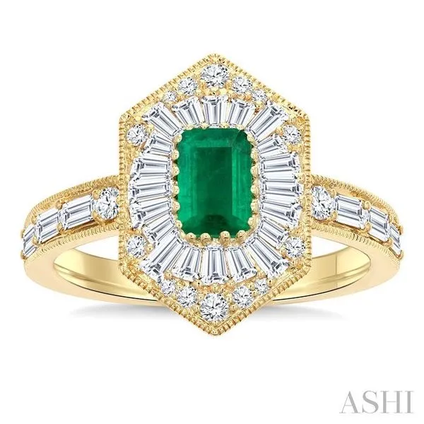 1 Ctw Art Deco Hexagon 6X4MM Octagon Shape Emerald, Baguette and Round Cut Diamond Precious Fashion Ring in 14K Yellow Gold Image 2 Adler's Diamonds Saint Louis, MO