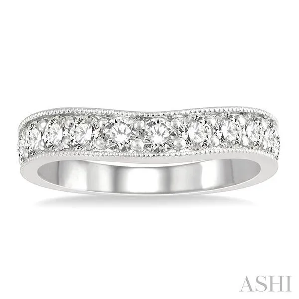 1 Ctw Curved Center Milgrain Border Round Cut Diamond Wedding Band in 14K White Gold Image 2 Adler's Diamonds Saint Louis, MO