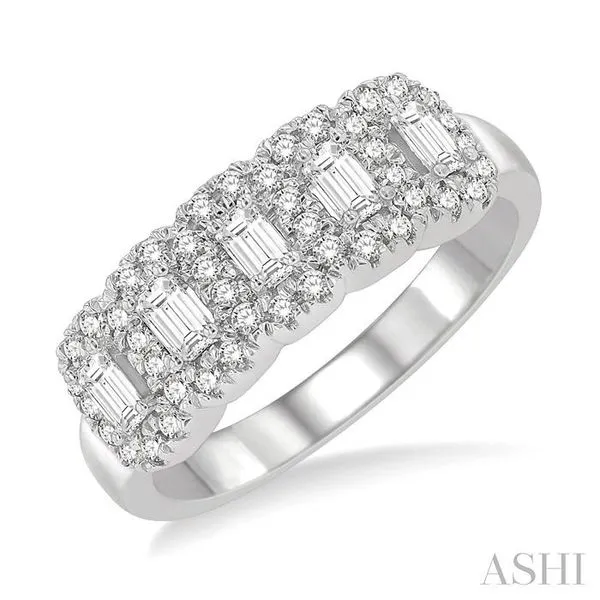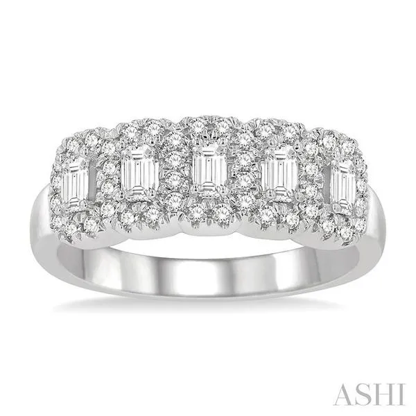 1 Ctw Emerald Shape 5 Stone Emerald & Round Cut Diamond Halo Wedding Band in 14K White Gold Image 2 Adler's Diamonds Saint Louis, MO