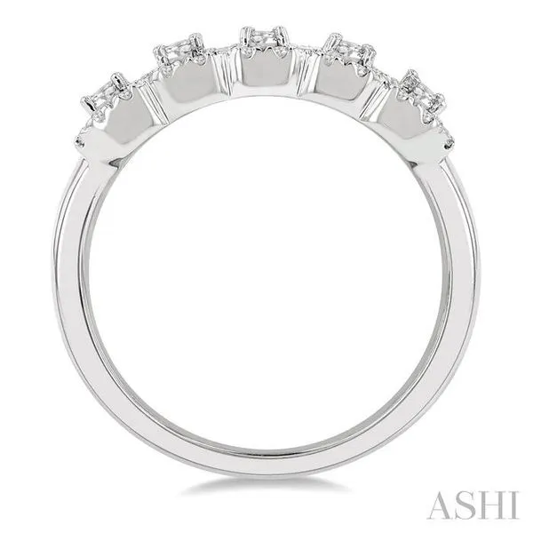 1 Ctw Emerald Shape 5 Stone Emerald & Round Cut Diamond Halo Wedding Band in 14K White Gold Image 4 Adler's Diamonds Saint Louis, MO
