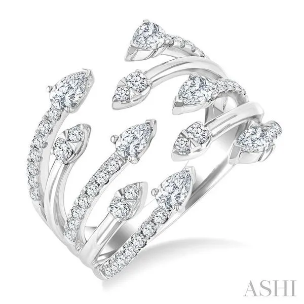 1 Ctw Five-Way Split Pear and Round Cut Diamond Fashion Open Ring in 14K White Gold Image 2 Adler's Diamonds Saint Louis, MO