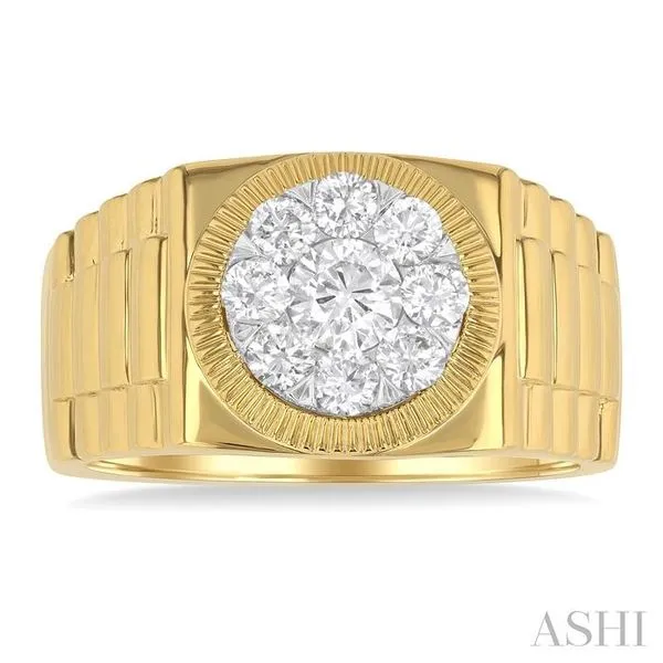 1 Ctw Flat Top Lovebright Round Cut Diamond Men's Ring in 10K Yellow and White Gold Image 2 Adler's Diamonds Saint Louis, MO
