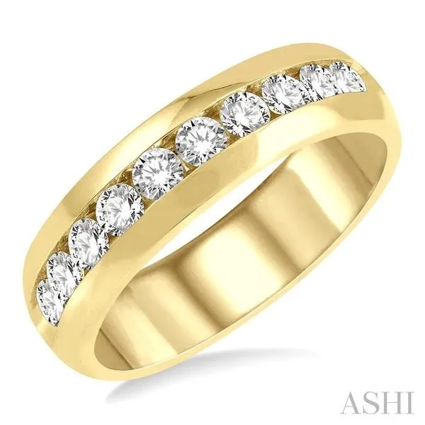 1 Ctw Niched Center Round Cut Diamond Men's Wedding Band in 14K Yellow Gold Image 2 Adler's Diamonds Saint Louis, MO