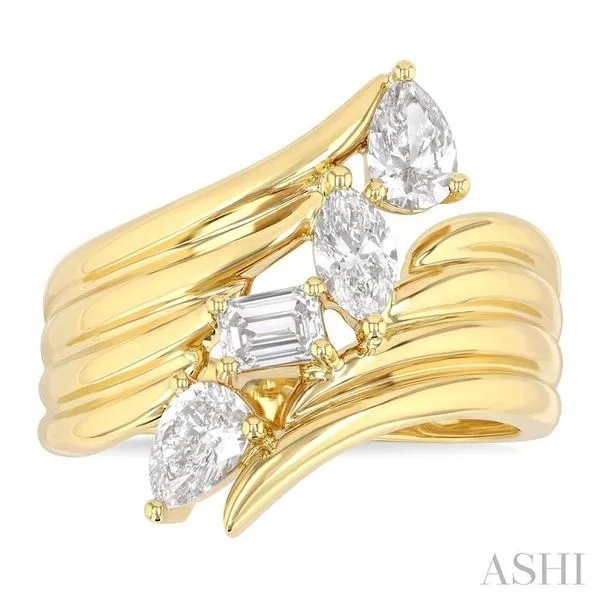 1 Ctw Open Bypass Ribbed Shank Mixed Diamond Cut Fashion Ring in 14K Yellow Gold Image 3 Adler's Diamonds Saint Louis, MO
