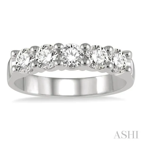 1 Ctw Round Cut Diamond 5 Stone Wedding Band in 14K White Gold Image 3 Adler's Diamonds Saint Louis, MO