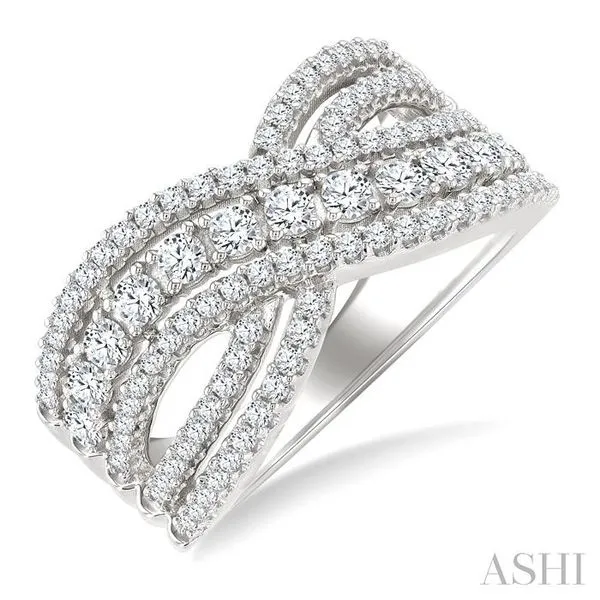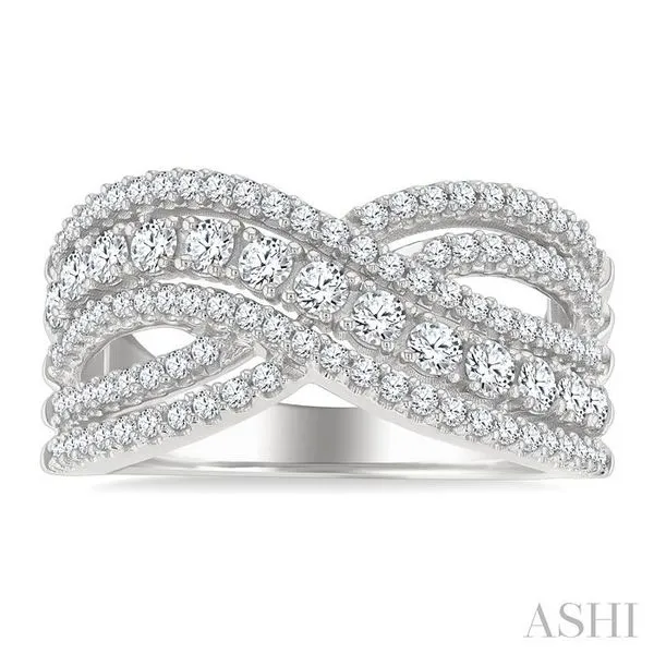 1 Ctw Round Cut Diamond Criss Cross Bold Fashion Band in 14K White Gold Image 2 Adler's Diamonds Saint Louis, MO