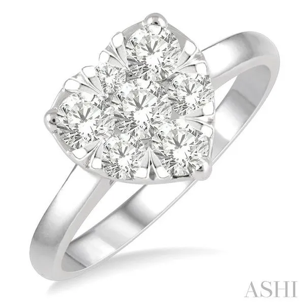 1 Ctw Round Cut Diamond Heart Shape Lovebright Ring in 14K White Gold