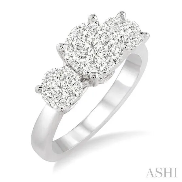 1 Ctw Triple Circle Round Cut Lovebright Diamond Ring in 14K White Gold