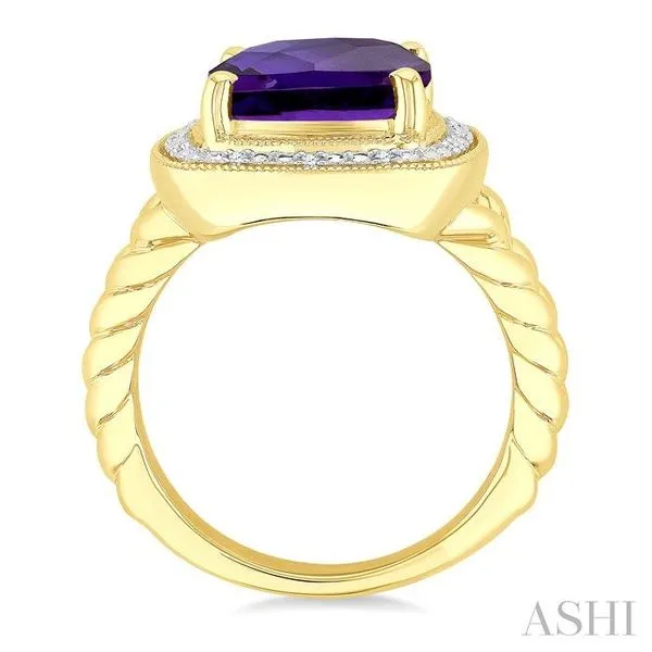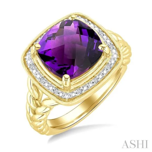 10 MM Cushion Shape Amethyst and 1/20 Ctw Round Cut Diamond Semi-Precious Ring in Yellow Gold Vermeil Image 3 Adler's Diamonds Saint Louis, MO