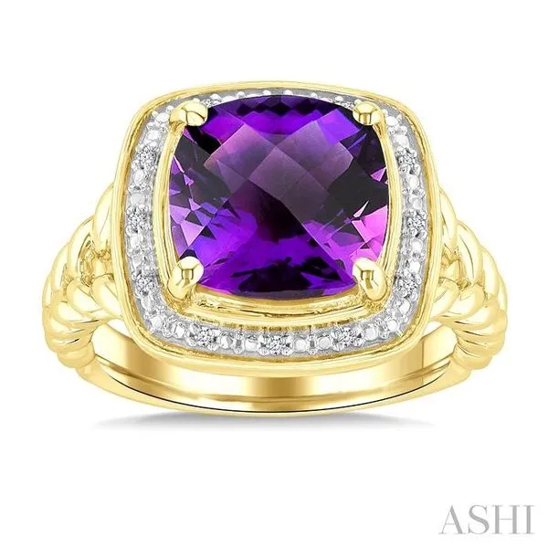 10 MM Cushion Shape Amethyst and 1/20 Ctw Round Cut Diamond Semi-Precious Ring in Yellow Gold Vermeil Image 2 Adler's Diamonds Saint Louis, MO