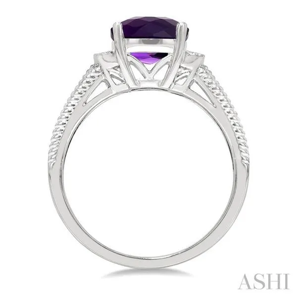 10x8 MM Cushion Shape Amethyst and 1/20 Ctw Round Cut Diamond Semi-Precious Ring in Sterling Silver Image 2 Adler's Diamonds Saint Louis, MO