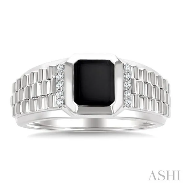 1/10 Ctw 8X7 MM Emerald Cut Onyx and Round Cut Diamond Semi-Precious Men's Ring in 10K White Gold Image 2 Adler's Diamonds Saint Louis, MO