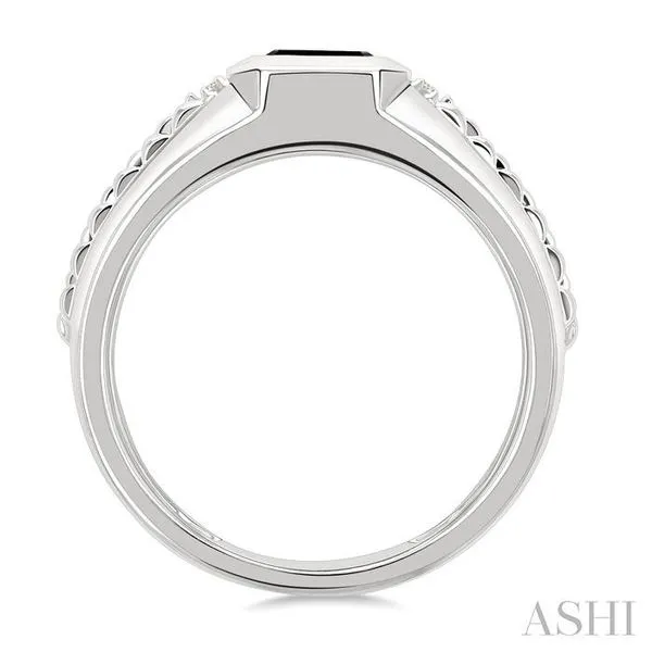3. 1/10 Ctw 8X7 MM Emerald Cut Onyx and Round Cut Diamond Semi-Precious Men's Ring in 10K White Gold