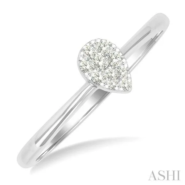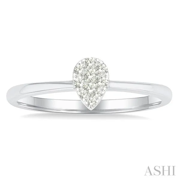 3. 1/10 Ctw Lovebright Petite Pear Shape Round Cut Diamond Fashion Ring in 10K White Gold