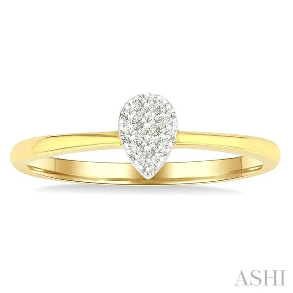 3. 1/10 Ctw Lovebright Petite Pear Shape Round Cut Diamond Fashion Ring in 10K Yellow Gold