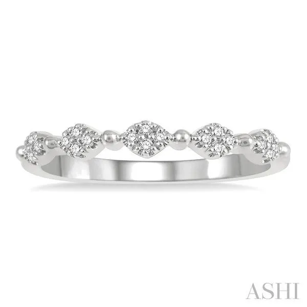 1/10 Ctw Marquise Mount and Ball Link Round Cut Diamond Stack Band in 14K White Gold Adler's Diamonds Saint Louis, MO