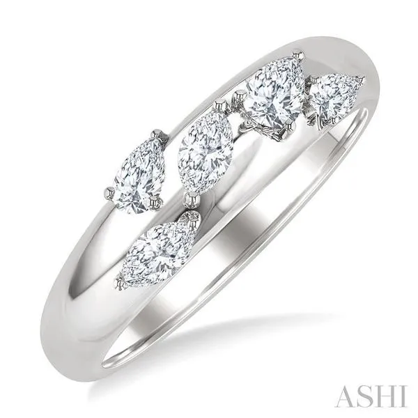 1/2 Ctw 5-Stone Pear and Marquise Cut Diamond Fashion Bold Band in 14K White Gold Image 2 Adler's Diamonds Saint Louis, MO