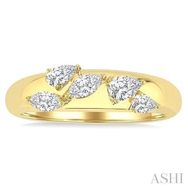 1/2 Ctw 5-Stone Pear and Marquise Cut Diamond Fashion Bold Band in 14K Yellow Gold Image 4 Adler's Diamonds Saint Louis, MO
