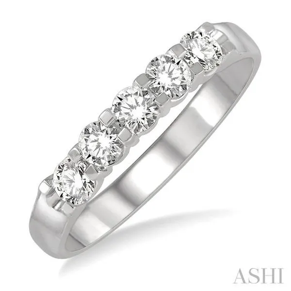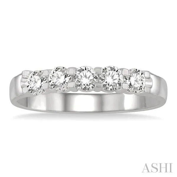 1/2 Ctw 5 Stone Round Cut Diamond Wedding Band in 14K White Gold Image 2 Adler's Diamonds Saint Louis, MO