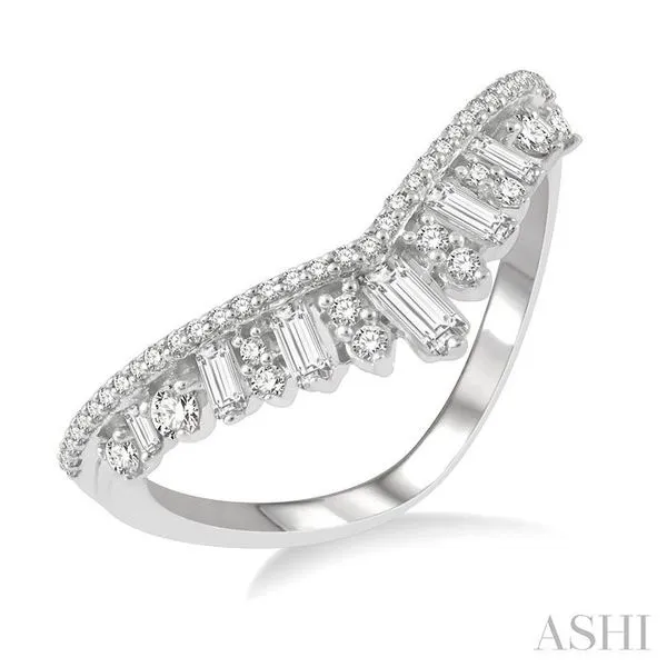 1/2 Ctw Chevron Drop Down Baguette and Round Cut Diamond Fashion Ring in 14K White Gold